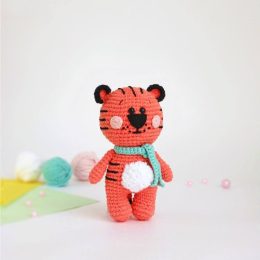 Уникальные детали включают крупные ушки, объемный мордочку и пушистый хвост, создающие уютный и милый образ. Текстурированная вязка и аккуратные швы подчеркиваю...