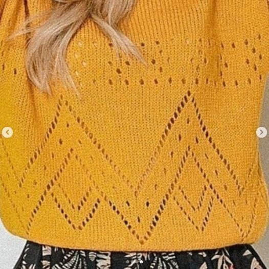 Модный желтый свитер с перфорацией и геометрическими узорами
