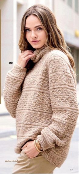 Этот объемный свитер, связанный из мягкой натуральной пряжи, идеально подходит для холодного времени года. Элементы узора создают изысканный акцент, а высокий воротник добавляет шарма. Длинные рукава и уютная текстура делают его идеальным выбором для комфортного времяпровождения.