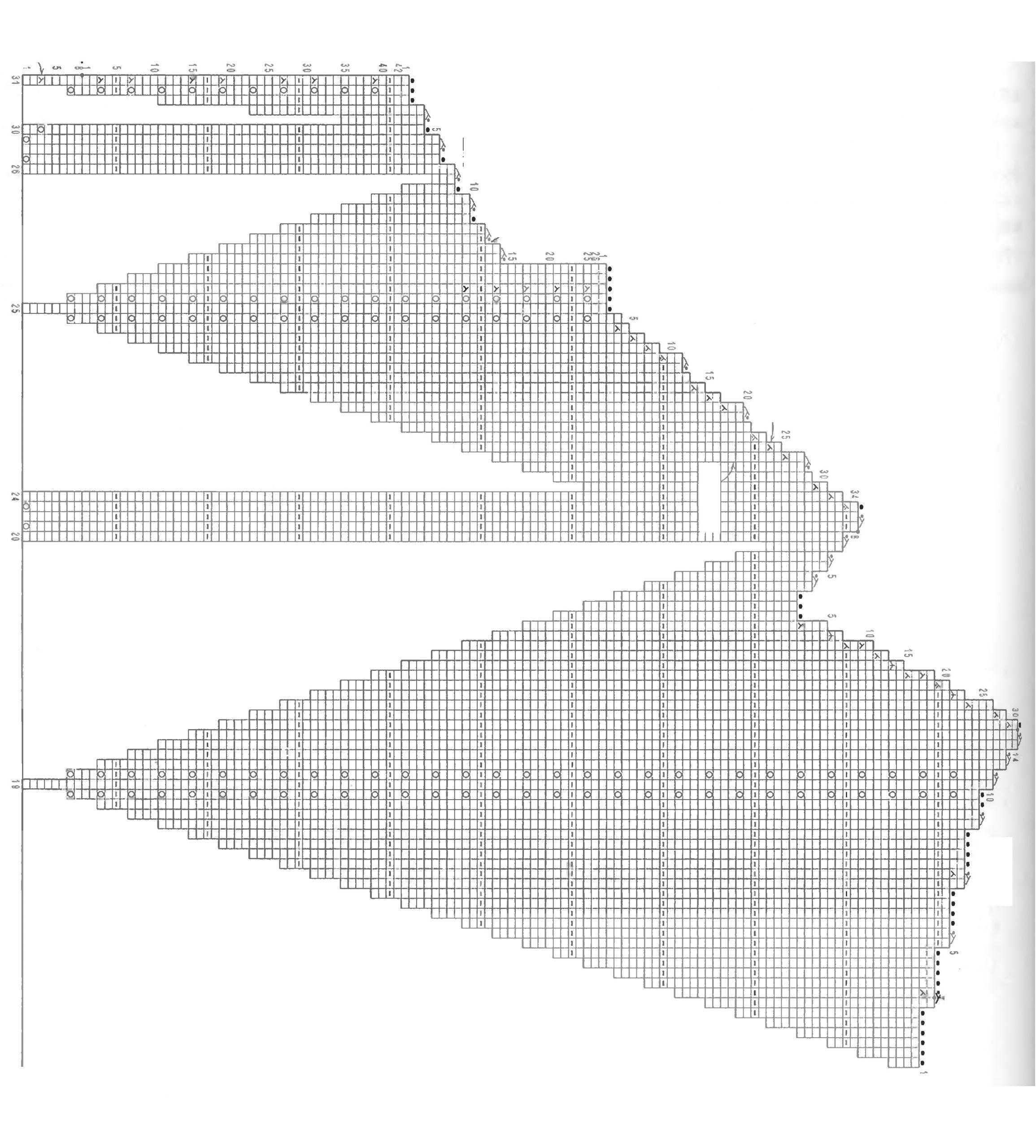 Узор, сам по себе довольно-таки простой. Сочетание лицевых рядов и изнаночных, плюс увеличение числа петель за счет накидов далает свое дело.