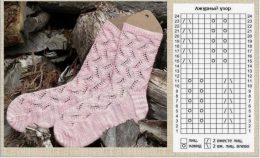 Нежные ажурные носки с волнообразным узором и тонкой текстурой.