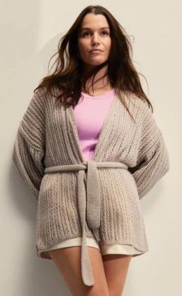 Объемный вязаный кардиган с поясом, создающий уют и стильный образ.