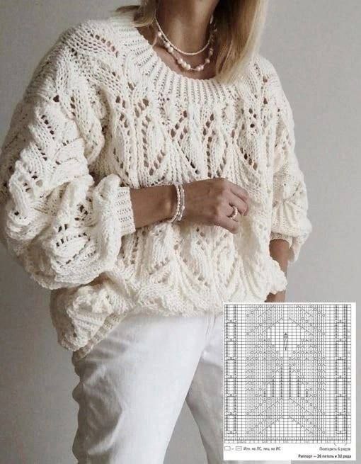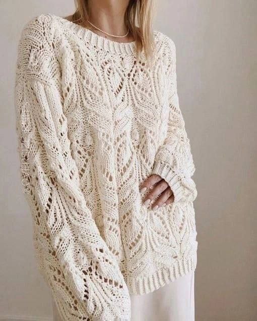 Объемный вязаный свитер с ажурным узором
