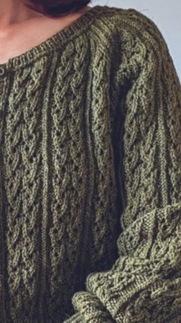 Этот кардиган вяжется спицами сверху вниз без единого шва. Работа начинается с планки горловины, затем вяжутся рукава- реглан. Тело и рукава разделяются по низу проймы и вяжутся по отдельности до нижних кромок. Завершают работу тонкие планки резинкой.