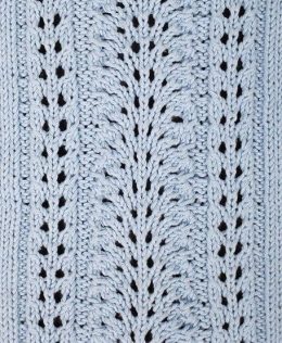 Изделие выполнено из мягкой пряжи светло-голубого оттенка и украшено изящным ажурным узором, который придаёт ему воздушность и женственность. Лаконичный крой и нежные детали делают этот топ идеальным выбором для летних прогулок.