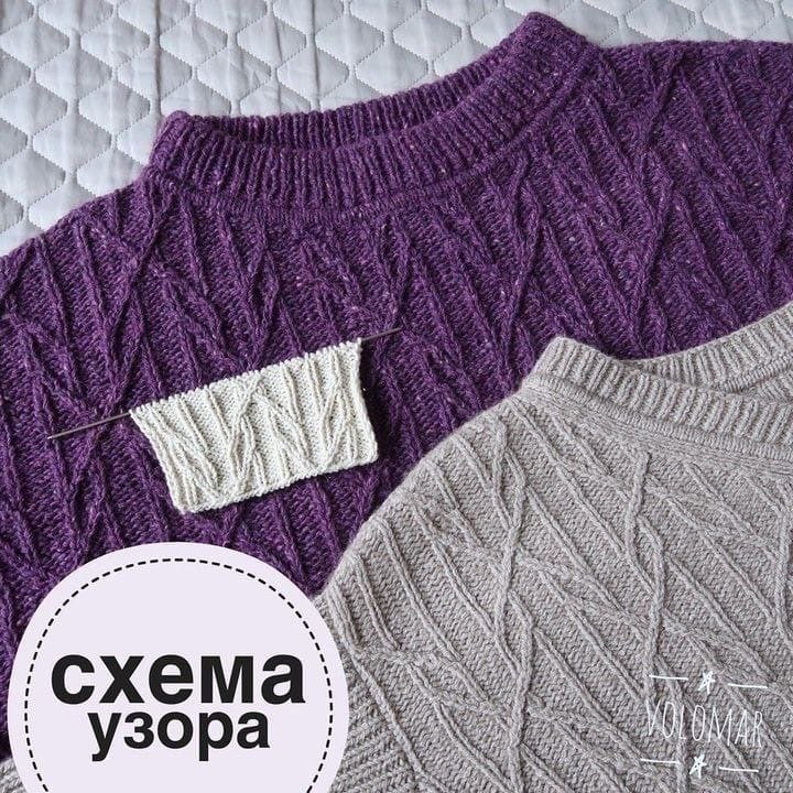Очаровательный образ спицами с выразительными рельефными узорами и аккуратными косами, создающими объемный эффект.