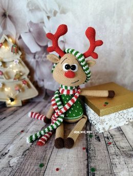 Размер Олененка с использованием указанных мной материалов 39 см (от ножек до рожек), сидя 28см., но у вас он может быть разного размера, в зависимости от выбора пряжи и крючка