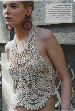 Красивый топик вязаный крючком, можно использовать хлопковую нитку. Для пляжа самое то!