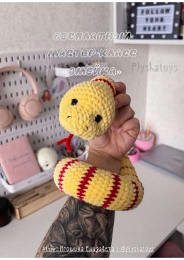 Какое очаровательное изделие! Эта вязаная змейка восхищает своей мягкостью и яркими полосками. Ее милое выражение лица и возможность обвиваться вокруг руки дела...