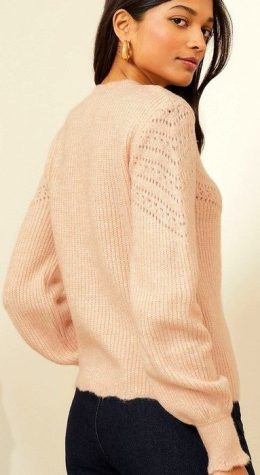 Привет! Посмотри, какой очаровательный вязаный свитер у нас тут. Его нежно-розовый цвет и изящный ажурный узор создают ощущение легкости. Такой свитер точно ста...
