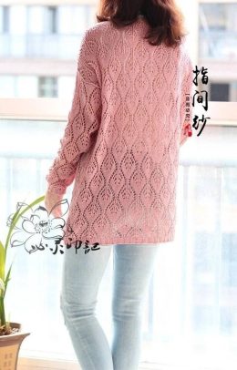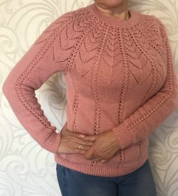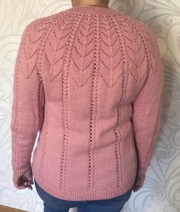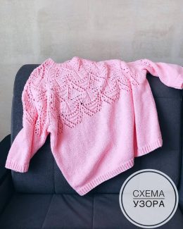Какое замечательное вязание! Эта розовая кофта потрясает своей сложной вязкой в виде листьев на плечах и аккуратными ажурными деталями по всей длине. Прекрасный...