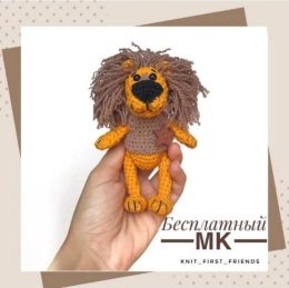Контраст ярко-оранжевого тела и пушистой гривы делает этого вязаного льва особенно милым. Большие черные глаза и забавная мордочка добавляют ему очарования. ✅ Л...