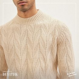 Что может быть лучше, чем обернуться в нежное тепло этого вязаного шедевра? Изготовленный спицами, свитер радует глаз изысканным узором и мягким бежевым оттенко...