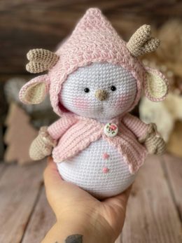Посмотрите, какой милый вязаный друг у нас здесь! Этот очаровательный олень одет в нежно-розовую шапочку с рожками, которая придает ему особый шарм. Обратите вн...