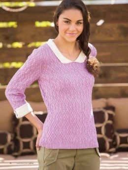 Этот свитер, связанный спицами, имеет изящный узор, который сразу бросается в глаза. Контрастный белый воротник добавляет изюминку, а укороченные рукава делают...