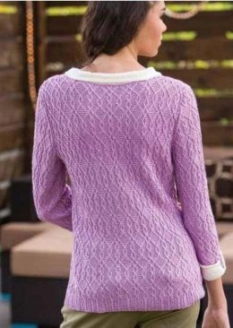 Представьте себе этот очаровательный вязаный свитер, который словно приглашает обнять его теплотой. Он выполнен из крупной вязки с интересными дырчатыми узорами...