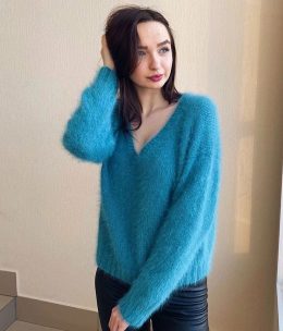 Пусть этот свитер согревает вас в самые прохладные вечера! Обратите внимание на его насыщенный бирюзовый цвет и нежный пушистый материал, которые придают ему ос...