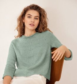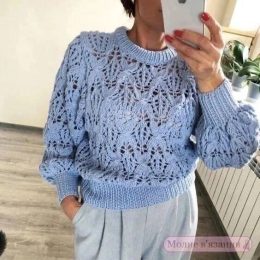 Помню, как бабушка рассказывала, что такие свитера были в моде во времена диско! Эта вязаная красота с ажурным узором и голубым оттенком точно напоминает те дни...