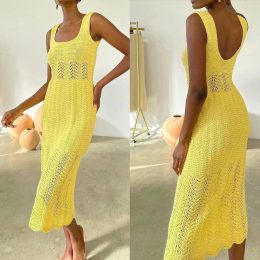 Контраст между насыщенным желтым цветом и нежным ажурным узором привлекает внимание. Платье выделяется элегантной текстурой с цветочными мотивами и идеально под...