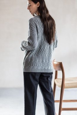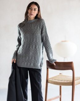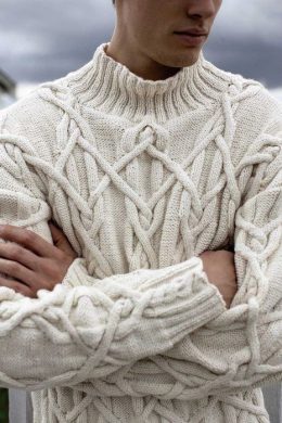 Петелька за петелькой, этот свитер с объемными косами окутывает уютом. Вырез горловины подчеркивает изысканный стиль, а сложный узор привлекает внимание к каждо...