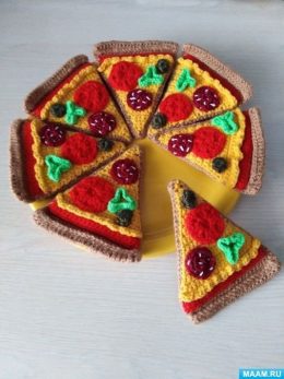 Эта забавная вязаная пицца удивляет своим реалистичным видом, но остается мягкой на ощупь. Яркие "ингредиенты" из пряжи, такие как красочные помидоры и зелёный...