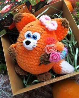 Приветствуем вас, друзья, эта очаровательная лисичка пришла с букетом цветов и цветком на ушке! Она связана крючком с любовью и заботой, и ее большие синие глаз...