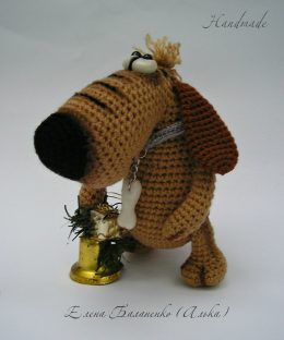 Эта очаровательная собачка явно знает толк в модных аксессуарах: косточка на цепочке и стильный колокольчик – must-have этого сезона! Ушастый модник с забавной...