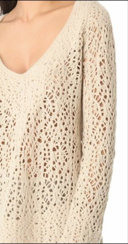 Этот свитер — как рыба в сети, только наоборот: не рыба поймана, а вы в сетку! В нем чувствуешь себя настоящей королевой пляжа, особенно благодаря ажурному узор...
