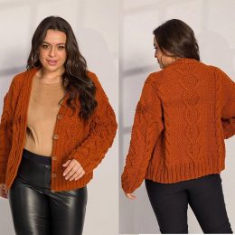 Пусть этот уютный кардиган, связанный с любовью, добавит вам тепла в прохладные дни! Ярко-оранжевый цвет и объемные косы делают его идеальным акцентом вашего об...