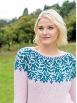 Этот очаровательный свитер с круглой кокеткой сверху точно согреет в холодные дни! Великолепная спиральная вязка и уютный высокий воротник делают его настоящим...