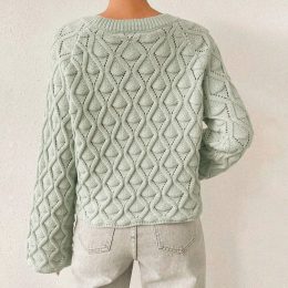 Пусть этот вязаный свитер согреет вас в прохладные дни! Мягкий мятный оттенок и изысканный узор с косами делают его настоящей находкой для любого гардероба. Пул...