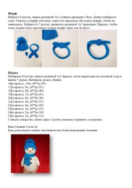 Этот очаровательный снеговик ручной работы оживает в яркой голубой шапке и шарфе, готовый дарить зимнюю радость. Его выразительные глазки и милый морковный носи...
