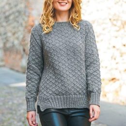 Свитер — это не просто одежда, это объятие, которое всегда с тобой. Этот серый свитер с объёмным узором привлекает внимание текстурой и стильными разрезами по б...