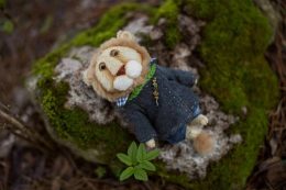Это уникальное рукодельное изделие представляет собой мягкую игрушку в виде кота, удобно расположившуюся на покрытом мхом камне. Особое внимание привлекает его...