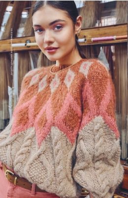 Этот свитер, выполненный в уникальной технике вязания, сочетает в себе классические косы и современный стиль. Особое внимание привлекает мягкая текстура и гармо...