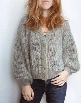 Какое восхитительное изделие! Эта вязка просто великолепна: мягкий серый цвет идеально сочетается с воздушной фактурой. Объемные рукава добавляют особый шарм, а...