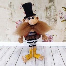 Этот вязаный персонаж напоминает циркового силача из прошлого века. Обратите внимание на его внушительные усы и высокий цилиндр, которые придают ему особый шарм...