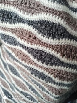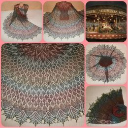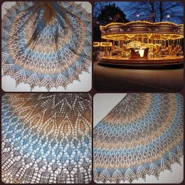 Посмотрите на эту удивительную вязаную шаль! Плавные переходы от теплых коричневых к нежным голубым оттенкам создают эффект волшебного карусельного круга. Изящн...