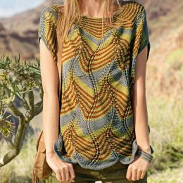 Спицами, с незаметной детали начинается этот шедевр: легкий ажурный узор, который плавно переходит в волнистый узор из ярких полос. Свободный крой и мягкие лини...