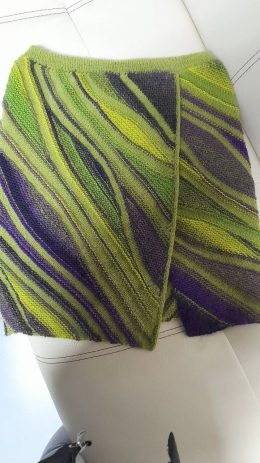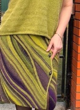 Этот яркий вязаный комплект сочетает в себе насыщенные оттенки зеленого и фиолетового, создавая волнующий узор, который напоминает весенние поля. Уникальная тек...