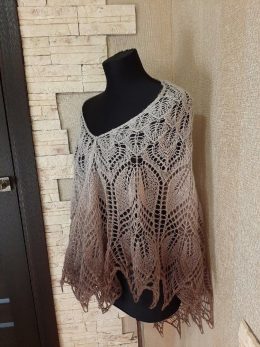Эта изысканная вязаная пелерина словно создана для романтических прогулок в осеннем парке. Замысловатый узор и плавный переход цвета от светлого к темному добав...