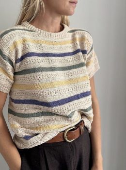 Спицами выполнена аккуратная отделка по краю рукавов и низа изделия, создающая эффект завершенности и аккуратности. Свитер спицами