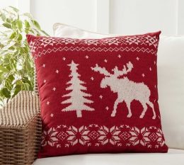 Если ваш диван мог бы рассказать историю, он бы обязательно упомянул этот милый чехол с лосем и елочкой на красном фоне. Ручная работа с акцентом на снежные узо...
