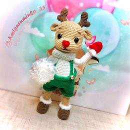 Взрыв креативности и мастерства! Этот милый вязаный оленёнок в зелёных штанишках и с ярким красным сердечком в лапке готов покорить любого. Его выражение и пуши...