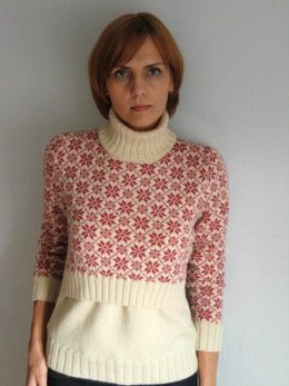 Мудрость в каждом стежке: этот свитер демонстрирует гармонию узоров и цвета. Нежные снежинки, разбросанные по верху, словно зимняя сказка, создают уютное настро...