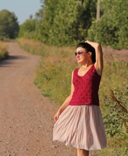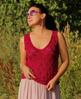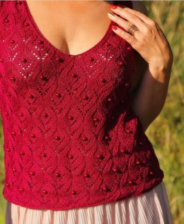 Дорогой друг, эта потрясающая вязаная майка станет ярким акцентом в твоем гардеробе! Обрати внимание на насыщенный ягодный цвет и изящный узор, который добавляе...