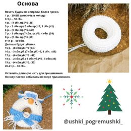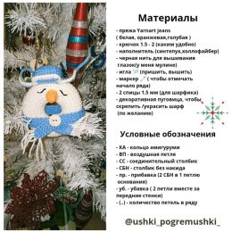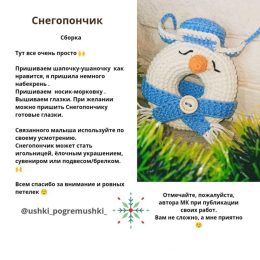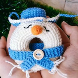 Очаровательный образ вязаного снежного человечка в форме пончика, украшенного ярко-синим шарфом и шляпкой. Улыбчивый носик и аккуратная пуговица добавляют издел...
