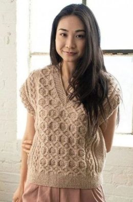 Этот вязаный топ спицами не только согреет, но и подарит уютное чувство, как будто вас обнимает плюшевый мишка. Обратите внимание на красивый узор с объемными к...