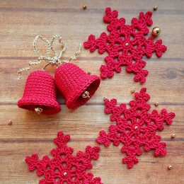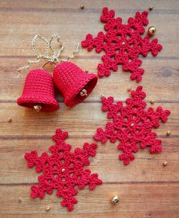 Волшебный взрыв творчества! Эти яркие красные вязаные снежинки и колокольчики добавляют праздничного шарма в любое пространство. Изящные узоры снежинок и малень...