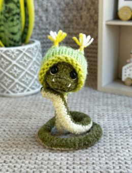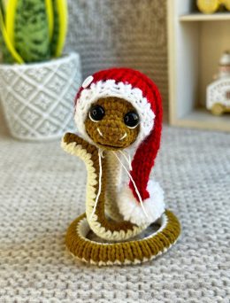 Эта очаровательная вязаная кобра, одетая в яркую красную шапку Санты, готова добавить праздничного настроения в ваш дом. Обратите внимание на её милые пуговичны...